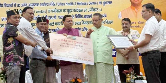 लालकुआं नगर पंचायत को मिला ‘अटल निर्मल पुरस्कार’, सीएम धामी ने किया सम्मानित