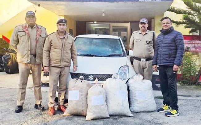 यह कार्रवाई अपर पुलिस अधीक्षक हरबन्स सिंह और सीओ रानीखेत विमल प्रसाद के निर्देशन में की गई। एसओजी प्रभारी निरीक्षक भुवन जोशी और थानाध्यक्ष अवनीश कुमार के नेतृत्व में चौकी प्रभारी संजय जोशी समेत पुलिस टीम रामनगर रोड, पीलीकोटी के पास वाहनों की सघन चेकिंग कर रही थी। इसी दौरान दिल्ली नंबर की स्विफ्ट कार (DL-5-CF-9911) को रुकने का संकेत दिया गया, लेकिन चालक ने कार छोड़कर अंधेरे का फायदा उठाकर फरार हो गया।